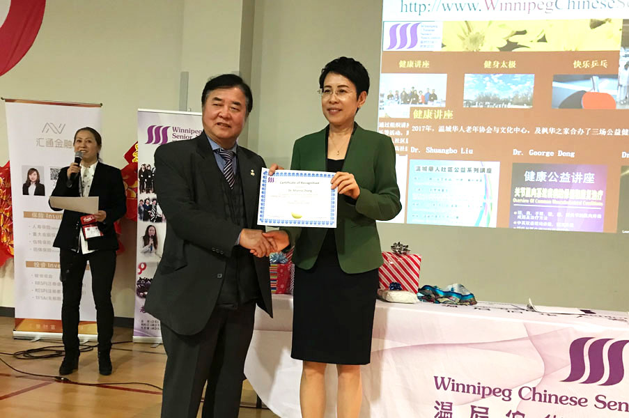 张医生的演讲由来自吉林大学的章钊颖同学提供普通话翻译。章同学是吉林大学白求恩医学部7年制第五年的学生, 现在曼大肿瘤和血液病研究所进行科学研究,她的志向是成为一名眼科医生。