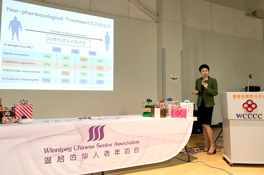 本次讲座主讲人张曼娜医生。张曼娜医生毕业于吉林省长春市的吉林大学医学院(原白求恩医 科大学)。曾在吉林大学第一医院肝病科从事临床和科研。现在曼尼 托巴大学附属医院和健康医学中心肝病科工作。张